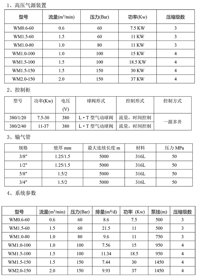主要包括:高壓氣源、控制柜、輸氣管、采油器。