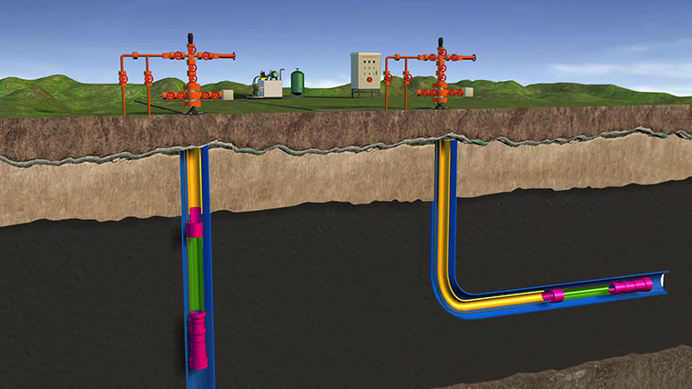 3、高壓氣體經輸氣管進入采油器,將油液舉升至地面,舉升完畢后,氣體由輸氣管排放至另外一口井或氣體處理裝置。